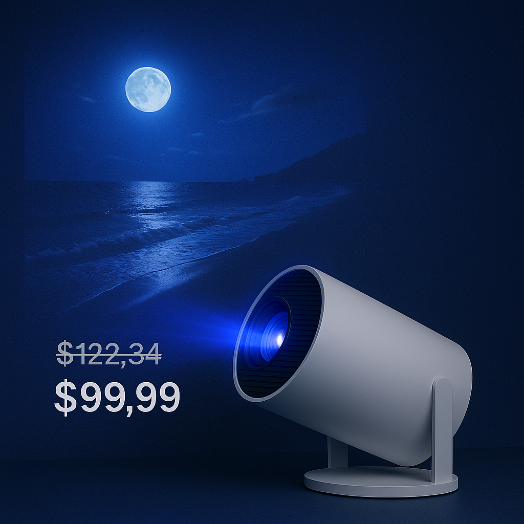 transforme instantanément votre chambre en véritable cinéma maison. Compact et silencieux, il diffuse une lumière bleu minuit apaisante et projette des images nettes et immersives, comme une plage sous la lune ou un ciel étoilé, pour des soirées relaxantes et pleines d’ambiance.